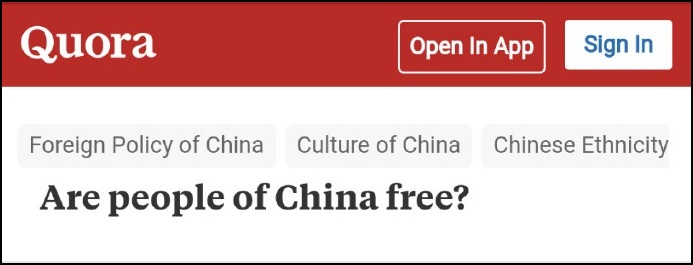 日前,在美國版“知乎”quora平台上,又有人提問“中國人民自由嗎?”,而一位出生、學習、工作在中國的網民貢獻了一個最高讚的答案。