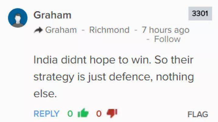 網友Graham:印度隊就沒有想贏,所以他們的策略就只是防守,別無其他。