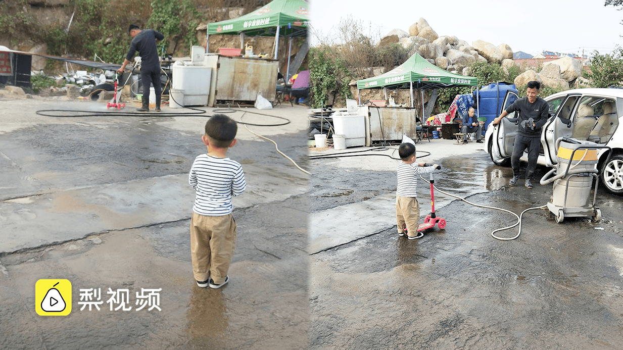 據梨視頻日前發佈視頻,孩子媽媽介紹,因為孩子父親正在青島出差,便帶着孩子過來看望。白天外出散步時,經過一個洗車行,“孩子問我他們在幹什麼?”