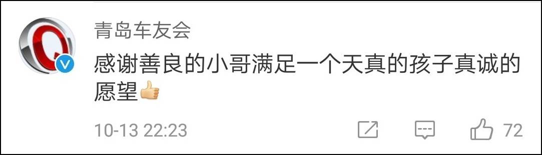 第一個是,在孩子心裏面種下一顆善良的種子,什麼事力所能及的,能幫你做到也就做到了,實現孩子的一個小心願;然後另外一方面,我覺得並不是所有的人都願意伸出一隻手來幫助別人,或者是完成別人的一件小心願。他這麼平凡的一個人,做這麼一件事是讓我們覺得心裏挺温暖的。