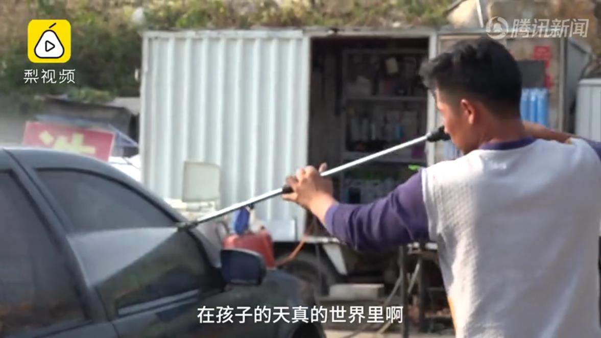 洗車行的老闆還介紹説,自己有三個孩子,給孩子買過玩具車,自己的孩子説想要洗自己的玩具車的時候,自己也都答應了,父子之間還一起完成這個温馨的過程。