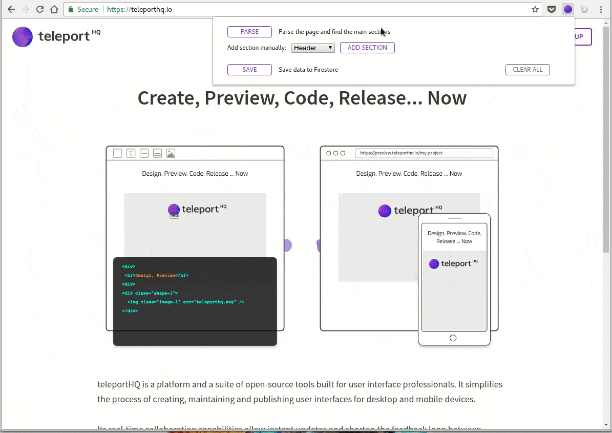 這個工具出自一個名為teleportHQ的項目,由Evo Forge和Corebuild兩家歐洲公司合作創立,歐洲區域發展基金(European Fund for Regional Development)出資贊助,他們希望這個項目能讓非技術人員也能方便的創建可視化的應用程序和web頁面。