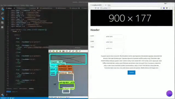 · 視覺模型檢測在圖像中出現的HTML部件,標記出他們的位置。