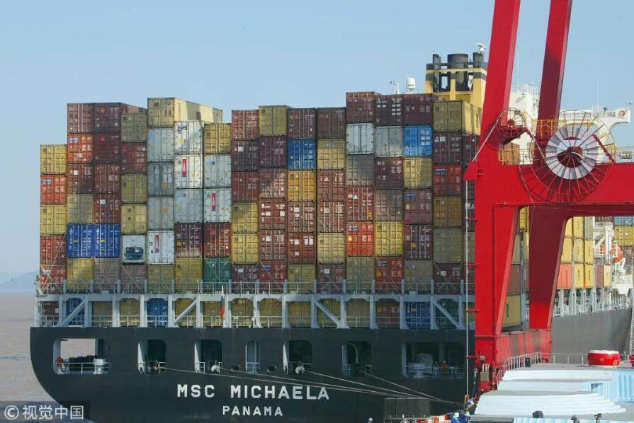 2005年3月6日, 寧波,一艘滿載集裝箱的遠洋輪即將離開中國港口 / 視覺中國