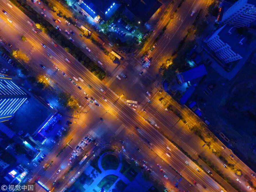2017年4月17日,航拍鏡頭下的西安南二環桃園橋附近燈火闌珊夜色迷人,在西安讀大學的很多學生會選擇留在西安工作,山西省、河南省的部分人也會選擇到西安工作 / 視覺中國