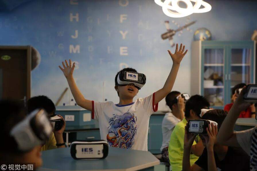 2016年7月5日,“IES沉浸式課堂”在北京東城區體育館路小學五年級開課了。學生們戴上VR眼鏡,在老師的帶領下,開啓一場特殊的天文課。大城市的教育資源更豐富,教育水平也更高 / 視覺中國
