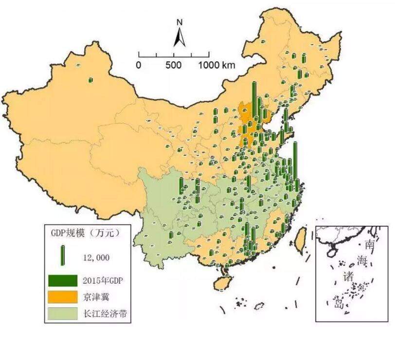 2015年中國地級以上城市GDP規模分佈 / 來源:中國城市競爭力報告No.15