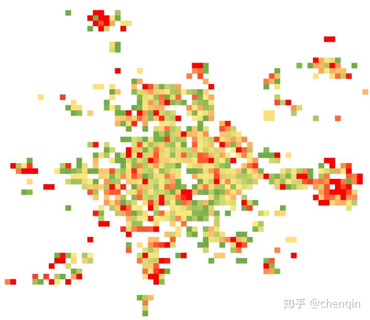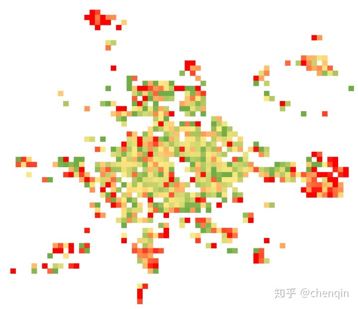 上圖是從2017年到2018年北京市每一個平方公里的房租上漲情況,紅色是上漲最快的地方,綠色是上漲最慢的地方。可以看到,最東邊的燕郊,