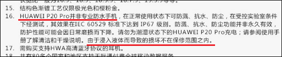 華為會良心一點,先説明我們不是專業的防水手機,但是浸入液體而導致的損壞也不再保修範圍內。