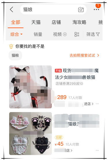 出於好奇心,我又在淘寶上搜索了一下貓娘。