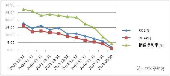 其次,ROE、ROA、銷售淨利率的指標連年下滑的趨勢沒有得到遏制,反而變本加厲。