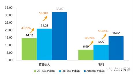 圖1:科大訊飛營業收入、毛利增長(單位:億元);來源:科大訊飛2018年半年度報告