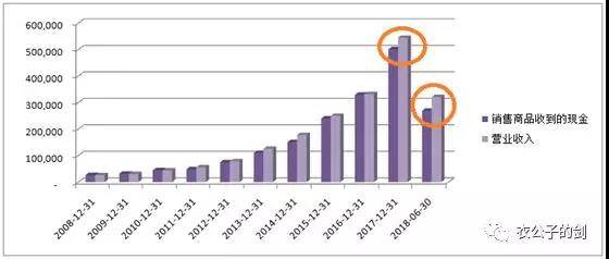 衣公子2月份和客户籤立合約,出售軟件,合同約定價值1億元。3月發貨,衣公子以發貨為標準確認營業收入1億元。截止6月末暫時沒有收到客户貨款,因此衣公子2018年6月末的財務報表,營業收入1億元,銷售商品收到的現金0元。
