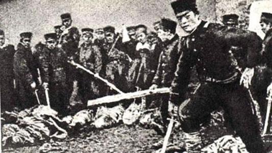 更慘絕人寰的是1894年日本攻陷遼東半島的旅順,進行了四天三夜的大屠殺,成千上萬的無辜同胞屍骨累累,慘死在日本屠刀之下。日本人的槍聲、呼喊聲和中國人害怕的尖叫聲以及絕望的呻吟聲到處迴盪。