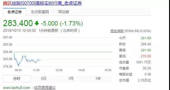 上週騰訊股價大跌,大部分的騰訊股票投資人怨聲載道,不過次日,其股價出現略微上浮的趨勢,僅此也讓很多股票投資人重燃希望,原以為按此趨勢發展,這周以後騰訊的股票一定會穩定回升,但令人沒想到的是,10月15日週一開盤後,騰訊股價依然還是保持下跌的態勢,這讓網傳的「騰訊股價持續下跌趨勢在短期內不可逆」的説法,越來越可信了。