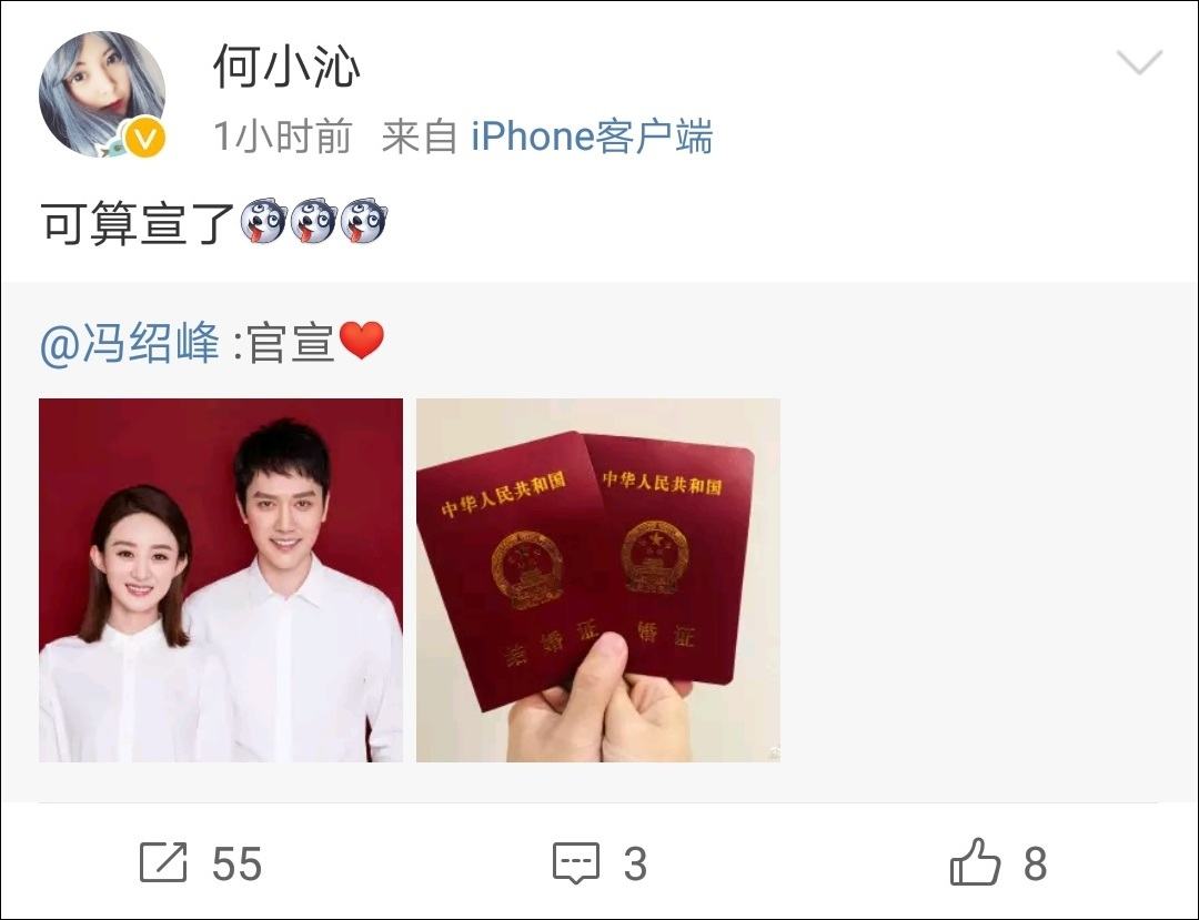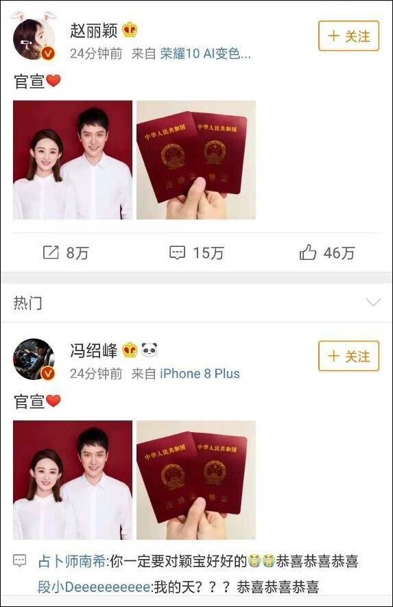 沒有官宣戀情,沒有發求婚微博,而是直接公開婚訊,大大方方曬出結婚證。