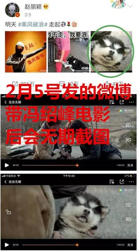 去年2月,趙麗穎宣傳《乘風破浪》用了馮紹峯主演的電影《後會無期》的截圖。