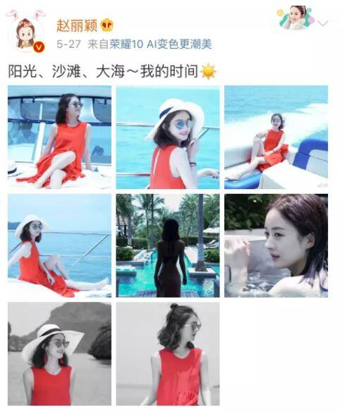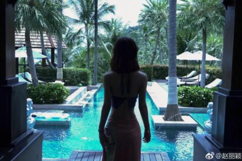 趙麗穎5月份發的這條微博就是她在蘇梅島度假的照片▼