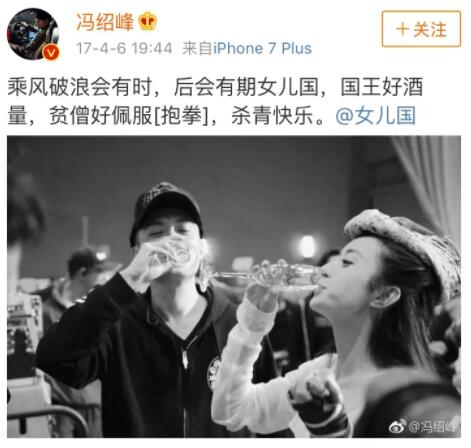 3月13號馮紹峯發了「師父我站船頭」的微博▼