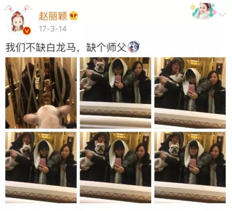 第二天白色情人節,趙麗穎發了一條「缺個師父」的微博▼