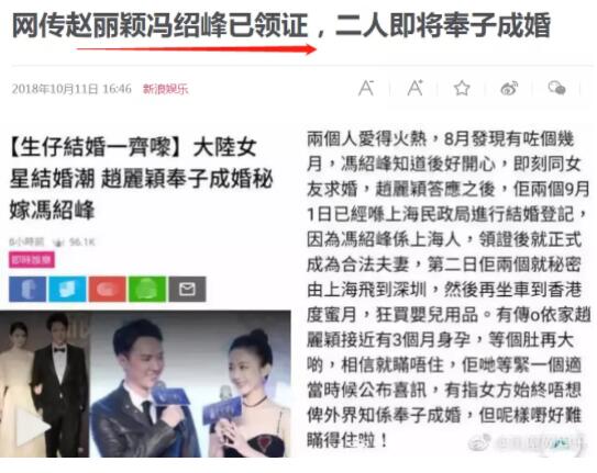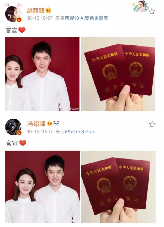 趙麗穎馮紹峯曬結婚證了,公開的時間點也太浪漫了吧!_風聞