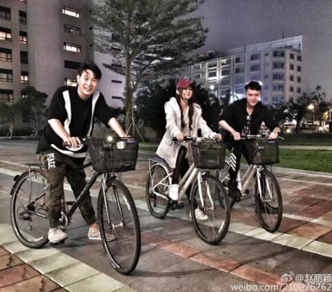《西遊記》劇組期間,兩個人加上小瀋陽一起騎着自行車遊覽台灣▼
