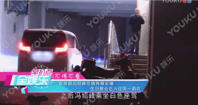 趙麗穎先行離開,馮紹峯之後坐車繞了遠路,來到趙麗穎酒店的後門。