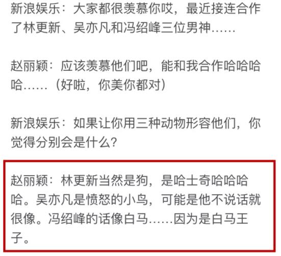 趙麗穎在採訪的時候講馮紹峯是白馬王子▼