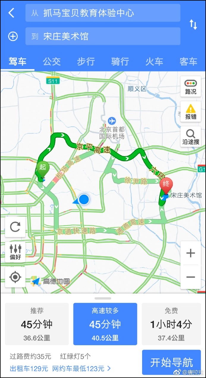 昨天下午從望京去宋莊,選擇走京承高速轉京平高速再轉東六環最後宋莊出口下來的路線。
