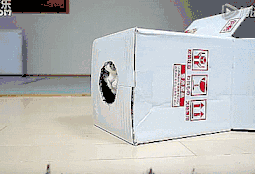 很明顯這種解釋存在一個問題,似乎鑽盒子成了貓情緒有問題的表現。但是下面動圖中的貓Maru不像是壓力大,也許Maru就是喜歡盒子而已。