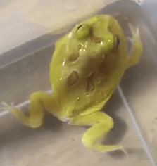 也正是因為有個(並不會經歷變態發育)變態人類的強行餵食,才發現了小南瓜活動時四肢不太協調,左前腳一直被她壓在身體下邊。聯繫了賣家之後,發現應該是角蛙在長途運輸過程中受傷了。十分可憐了,又冷(我當時還不會用加熱墊)又餓(未能成功餵食),還身有殘疾,代理主人還不靠譜。