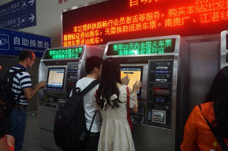 圖:內地居民以電子支付方式購買車票已電子化,方便快捷,但在香港西九龍站的高鐵自助售票機仍待引入微信、支付寶