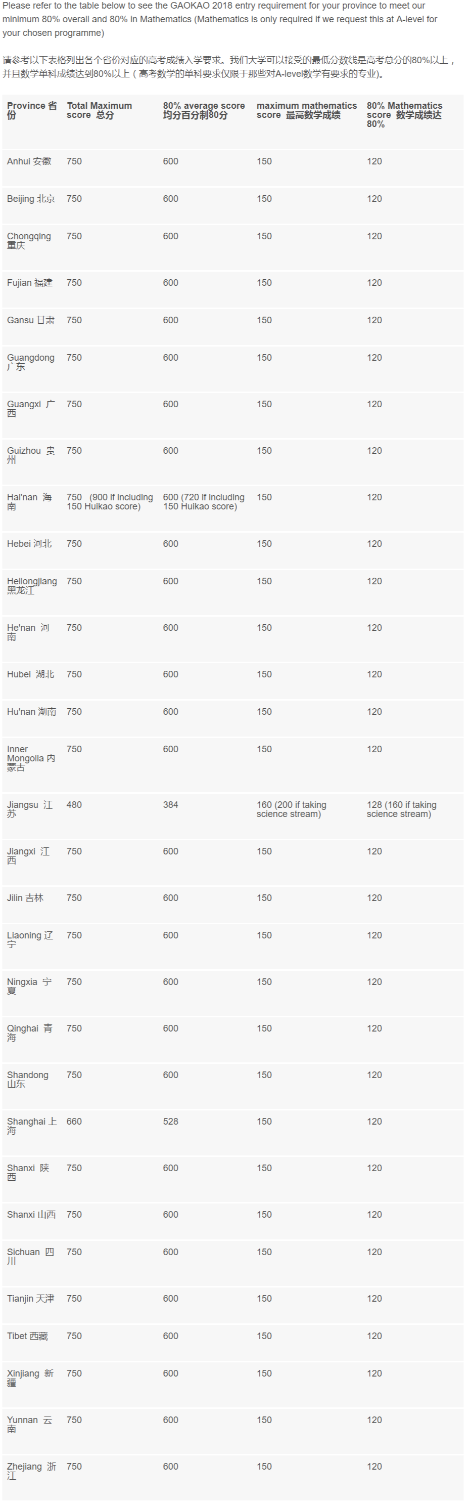 滿分只有480的江浙考生不用着急,伯明翰充分考慮到了中國各地的情況差異,每個省份都有自己的詳細標準喲。