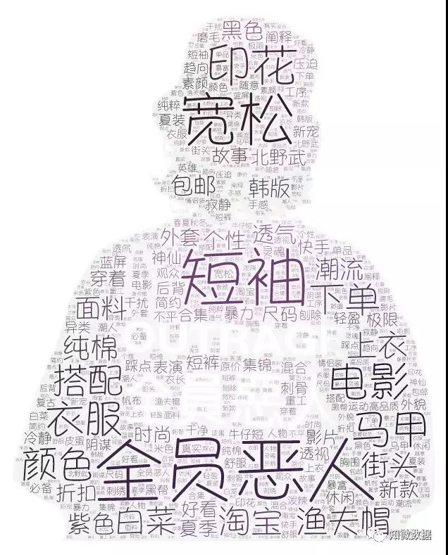 在“全員惡人”走紅網絡前期,從高頻詞可以看到,“短袖、漁夫帽、馬甲”等相關周邊產品出現較多,發佈者多為店家和一些發放優惠券的賬號。而除了這些推薦衣飾的內容,高頻詞還有“電影、影片、北野武、故事”等,在早期關於全員惡人的討論中,這部電影占據了一席之地。