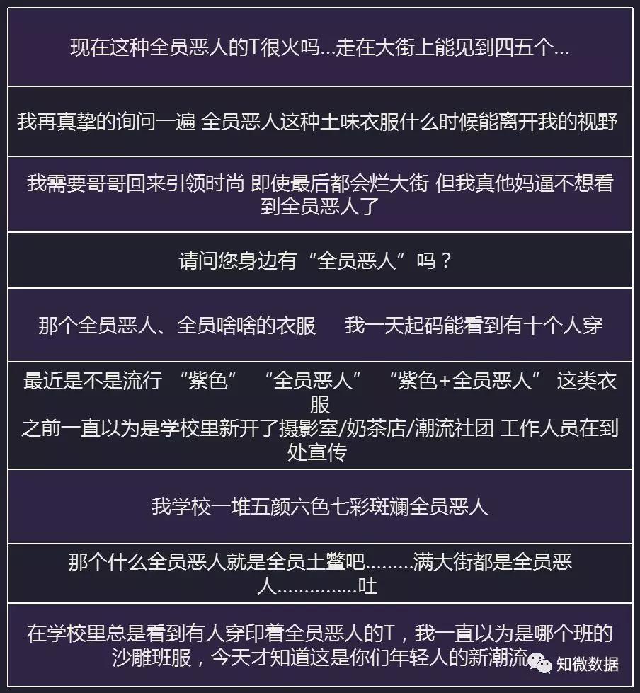 從聲量來看,6月之前都較為平緩,6月至7月中旬,有部分網友開始反映“滿大街都是全員惡人”,更有網友吐槽“我一天起碼能看到十個人穿”。聲量走勢圖顯示,6月之後,全員惡人提及量逐漸上升。