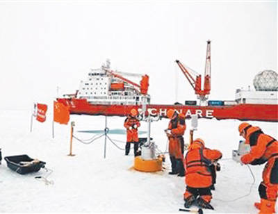 自主研發無人值守的冰站系統不易,在冰上安裝布放也很困難。由於氣候變暖,北半球夏季的北極海冰大面積消融,而建立冰站必須儘可能選擇面積較大、較堅固的海冰,這就需要在有限的時間內儘快遴選。這時,“雪龍號”上的船載直升機就派上用場,升空盤旋,仔細來回偵察,選擇那些面積和厚度較大、裂隙較少的海冰。選定海冰之後,接着就是轉運設備和施工,雖然是北極的夏季,但是冰面上不僅異常寒冷,而且天氣多變,往往是狂風、大雪、濃霧接踵而至。施工隊員克服重重困難,終於把設備安裝到位並進行了成功測試。