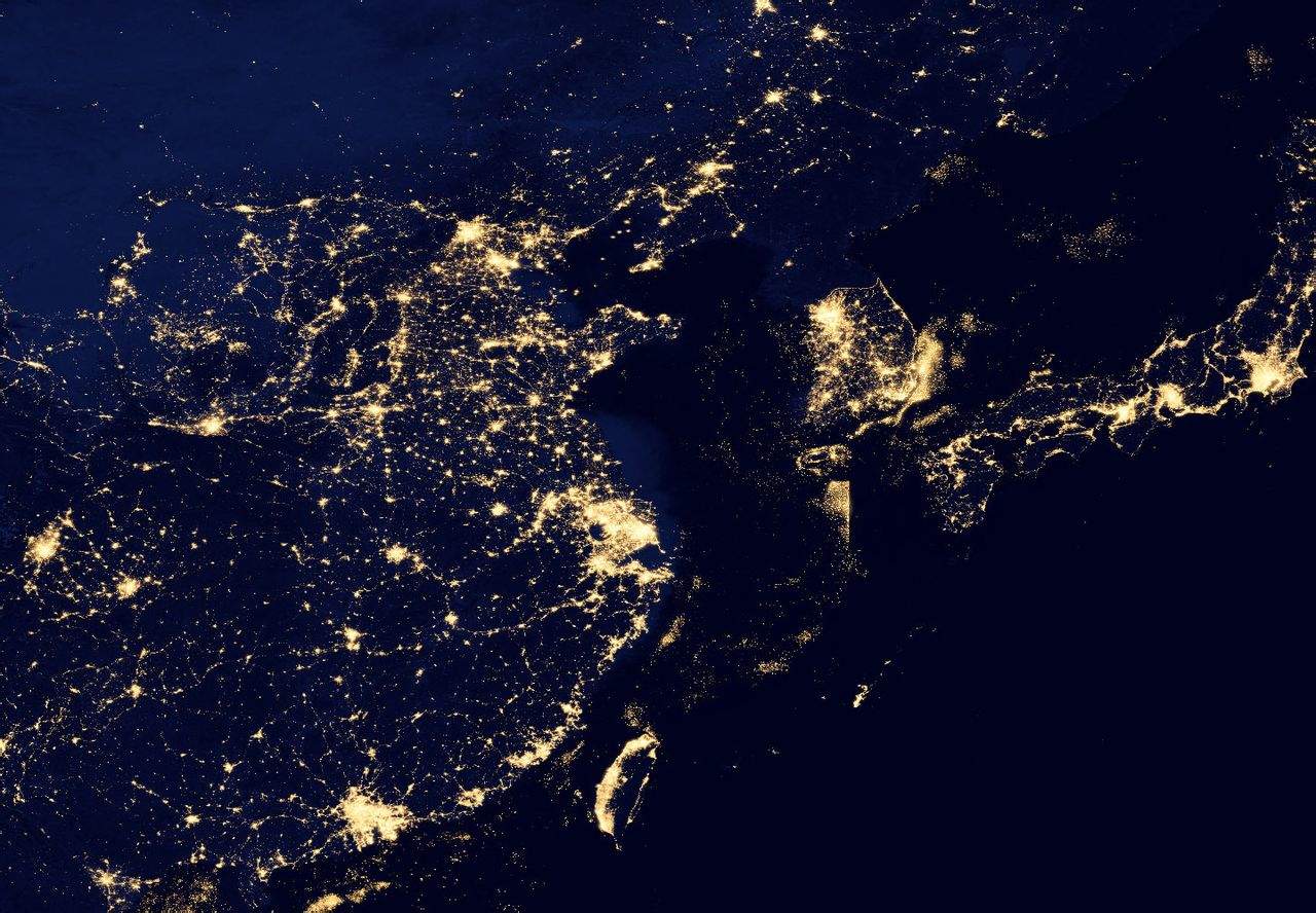 衞星拍攝的中日韓朝四國夜景