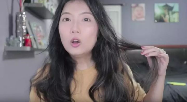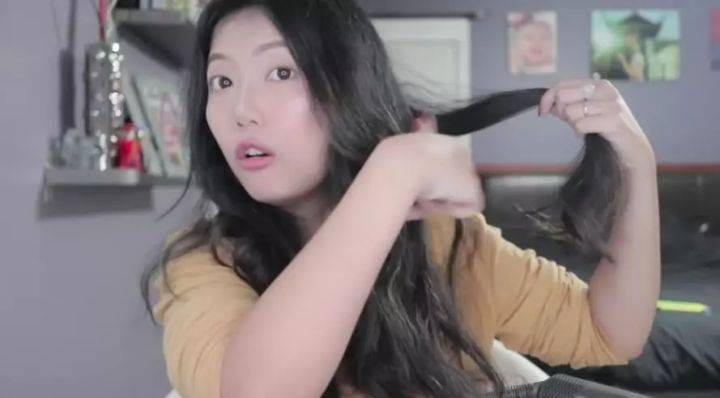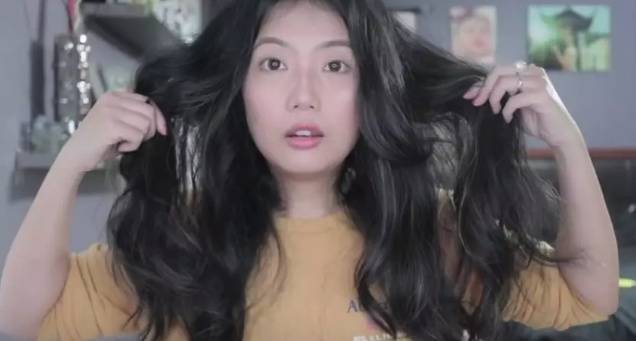然而,她花了三分鐘簡單畫了個妝,然後準備開始錄製這個測評視頻,發現頭髮的卷度幾乎已經沒有了。。。