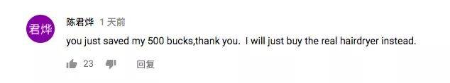“你替我剩下了500美金,謝謝你,我會買真正的吹風機來替代它。”