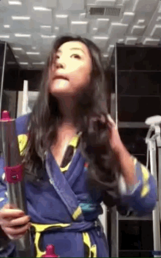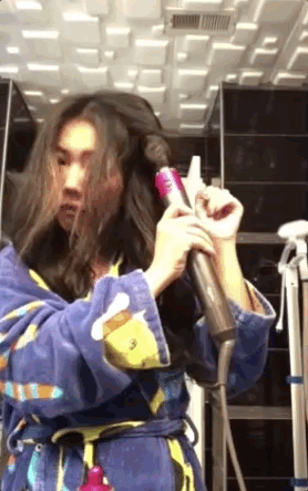 接下來這位小姐姐就向大家展示了最萬眾期待的部分,就是它的捲髮功能。然而,實際情況卻也讓人失望。
