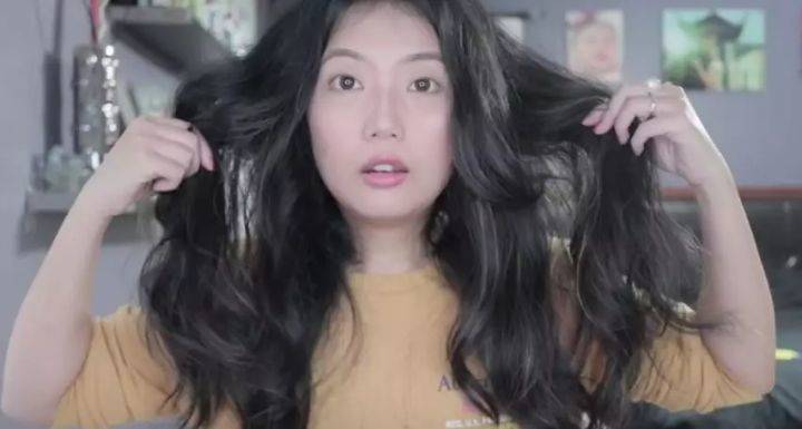 這是她洗完澡將頭髮吹到八成幹卷好的頭髮,已經很接近人們平常的使用習慣了。