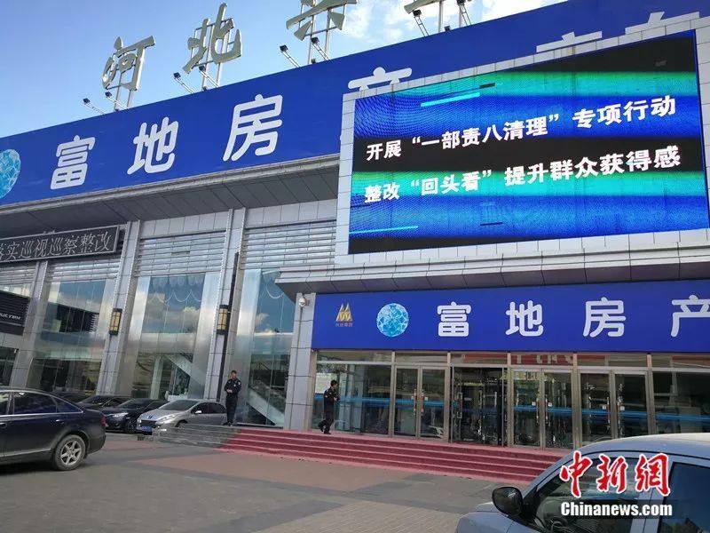 售樓一條街上,幾大售樓中心頂端的大型電子屏上滾動播放着表決心的標語。中新網記者 邱宇 攝
