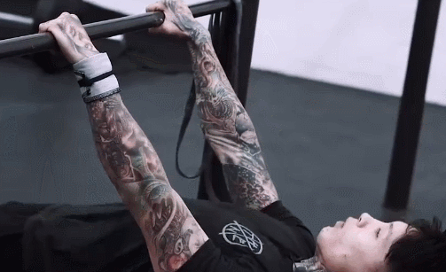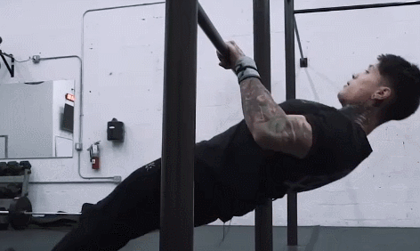 引體向上,無論是怎樣的引體,儘量保持身體筆直,然後是背部用力,將肩胛骨從後面推到前面,接着是手臂發力,完成最後的彎曲:
