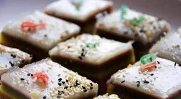重陽糕又稱花糕、菊糕、五色糕。講究的重陽糕要做成九層,像座寶塔,上面還做成兩隻小羊,以符合重陽(羊)之義。