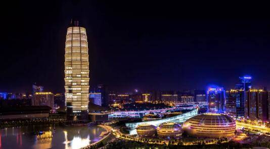 現在的鄭東新區CBD是這樣的,氣勢磅礴。大玉米在夜幕下流光溢彩,璀璨鋪滿如意湖。