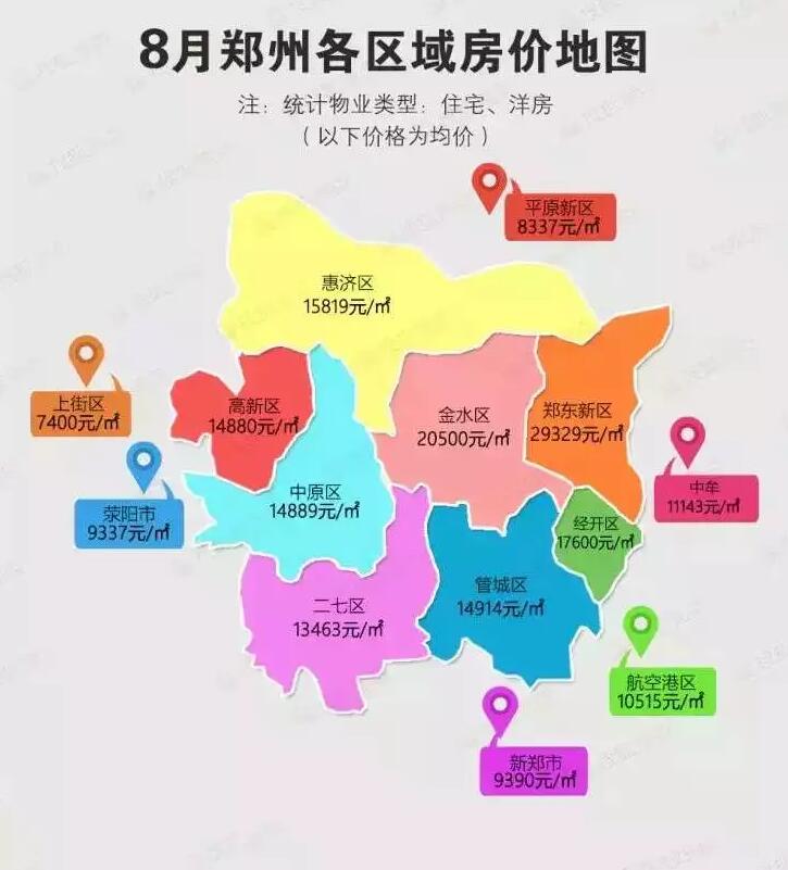 鄭東新區(北龍湖+CBD+高鐵商務區)>金水區>白沙綠博象湖組團>二七區>中原區(常西湖板塊)=港區>老高新區=惠濟核心區>管城區=鄭南三環區