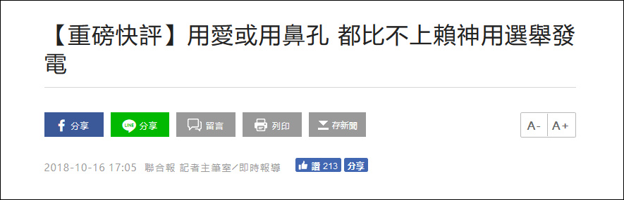 聯合新聞網16日就發表評論稱,為了“非核神主牌”,民進黨當局創造了“百般神奇發電術”,像“用愛發電”和“插鼻孔來電”等,但無論如何都比不上賴清德的“選舉發電”,“不只沈榮津未能領悟,連柯文哲的高智商都參不透:為何過一個晚上,電就夠了?”