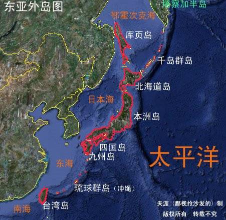 如果加上最北部的堪察加半島,可以説這 條“東亞外島鏈”是由這五個半島嶼(羣島)構成的。