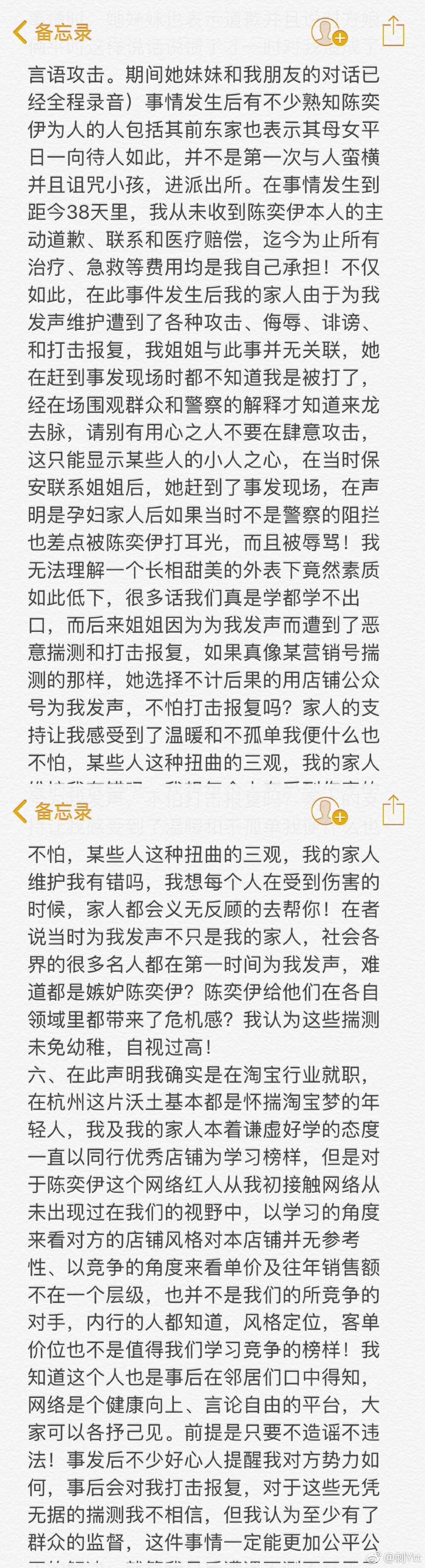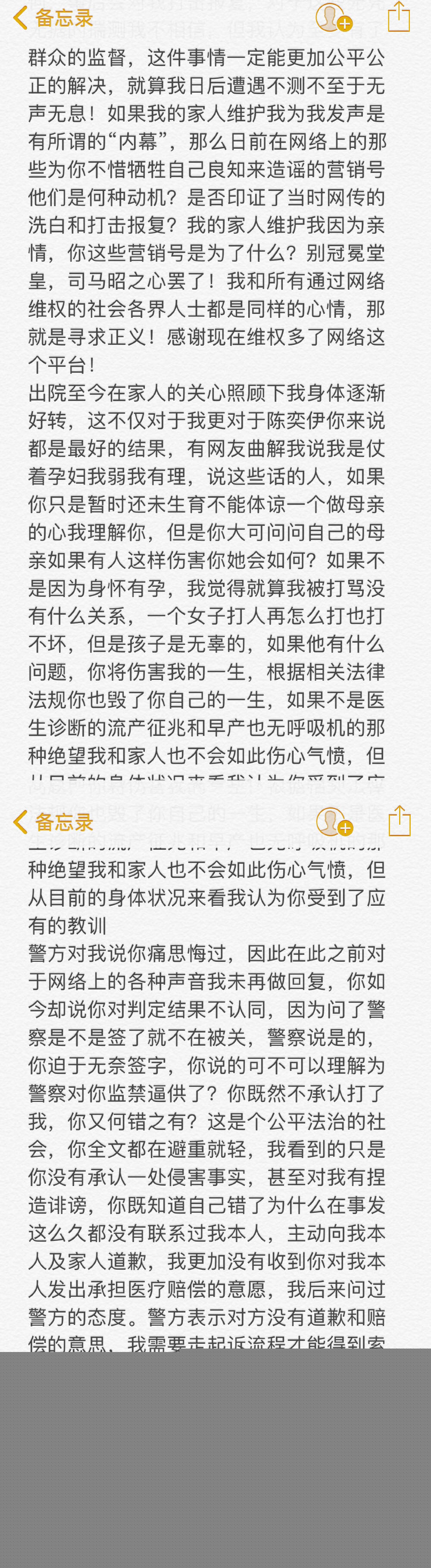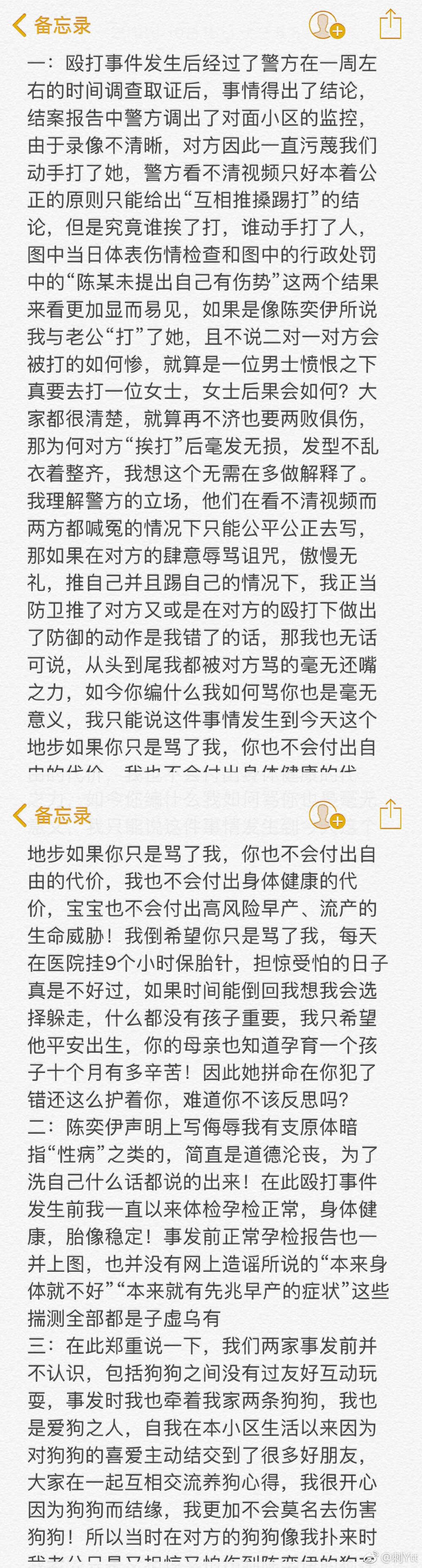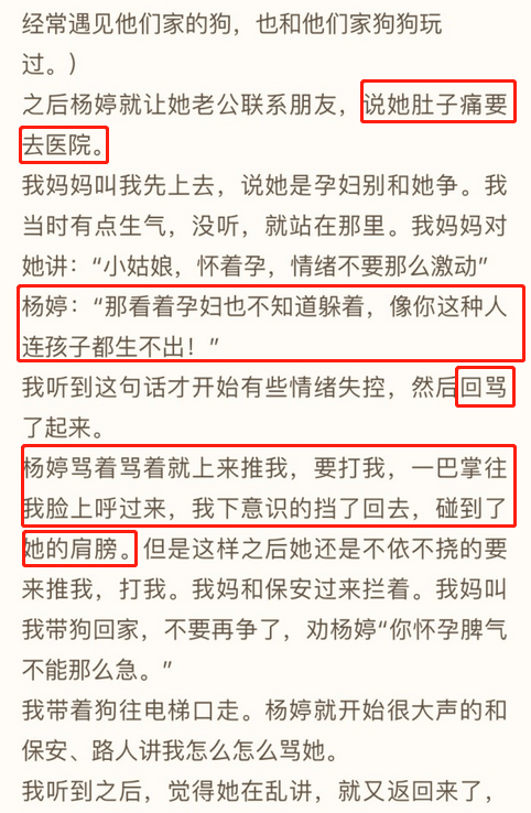這一部分出入就比較大了,主要集中於兩點,誰先動的手,最引起網友憤怒的一點——有沒有碰孕婦的肚子。