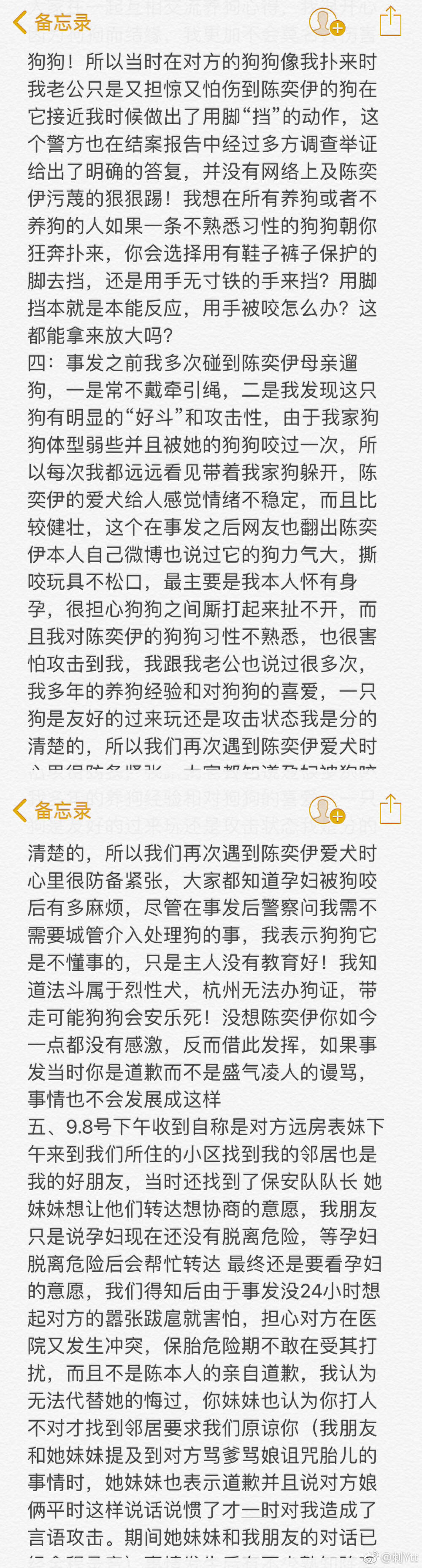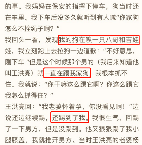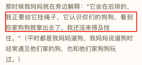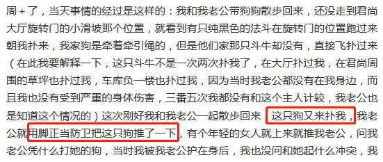 雙方對於此事都進行了各自的描述,首先是狗撲人的部分。
